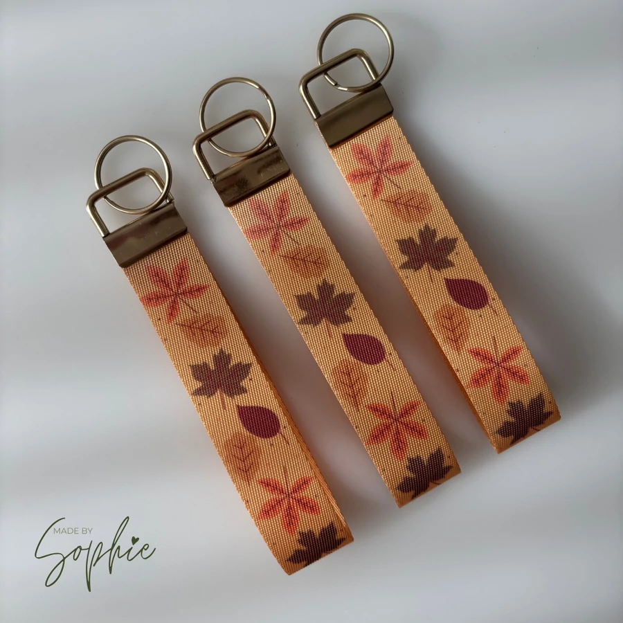 Praktikus és stílusos csuklópántos kulcstartó, saját tervezésű őszi mintával. Könnyen a csuklóra húzható, így mindig kéznél lesznek a kulcsaid.